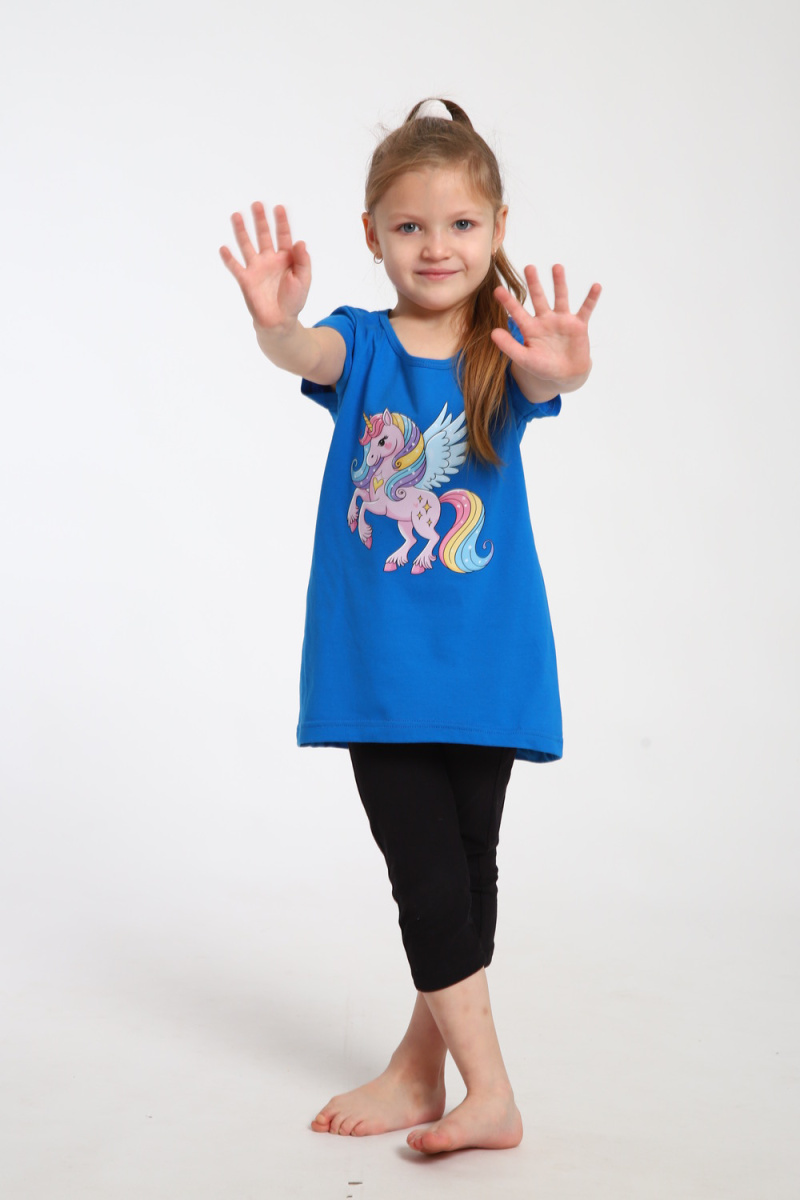 Яркий костюм для маленьких принцесс собран из туники с радужным единорогом и тресс на эластичной резинке шириной 2 см. на талии. Комплект из 100% хлопка, самый удачный вариант для активного ребенка. Туника А - образного силуэта с коротким рукавом и качественной термопечатью по переду. Горловина круглая и достаточно широкая, что позволит ребенку самому без труда надеть и снять тунику через голову. Достаточно разнообразный цветовой ряд, даст возможность выбрать вам костюм по душе. На фото модель представлена в 32-ом размере.
