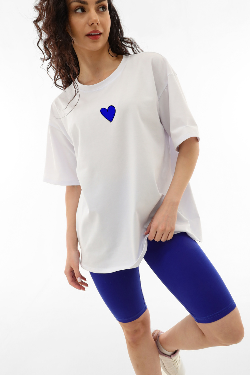 Спортивный костюм женский выполнен в белом цвете с голубыми акцентами, что придает ему неповторимый и свежий вид.